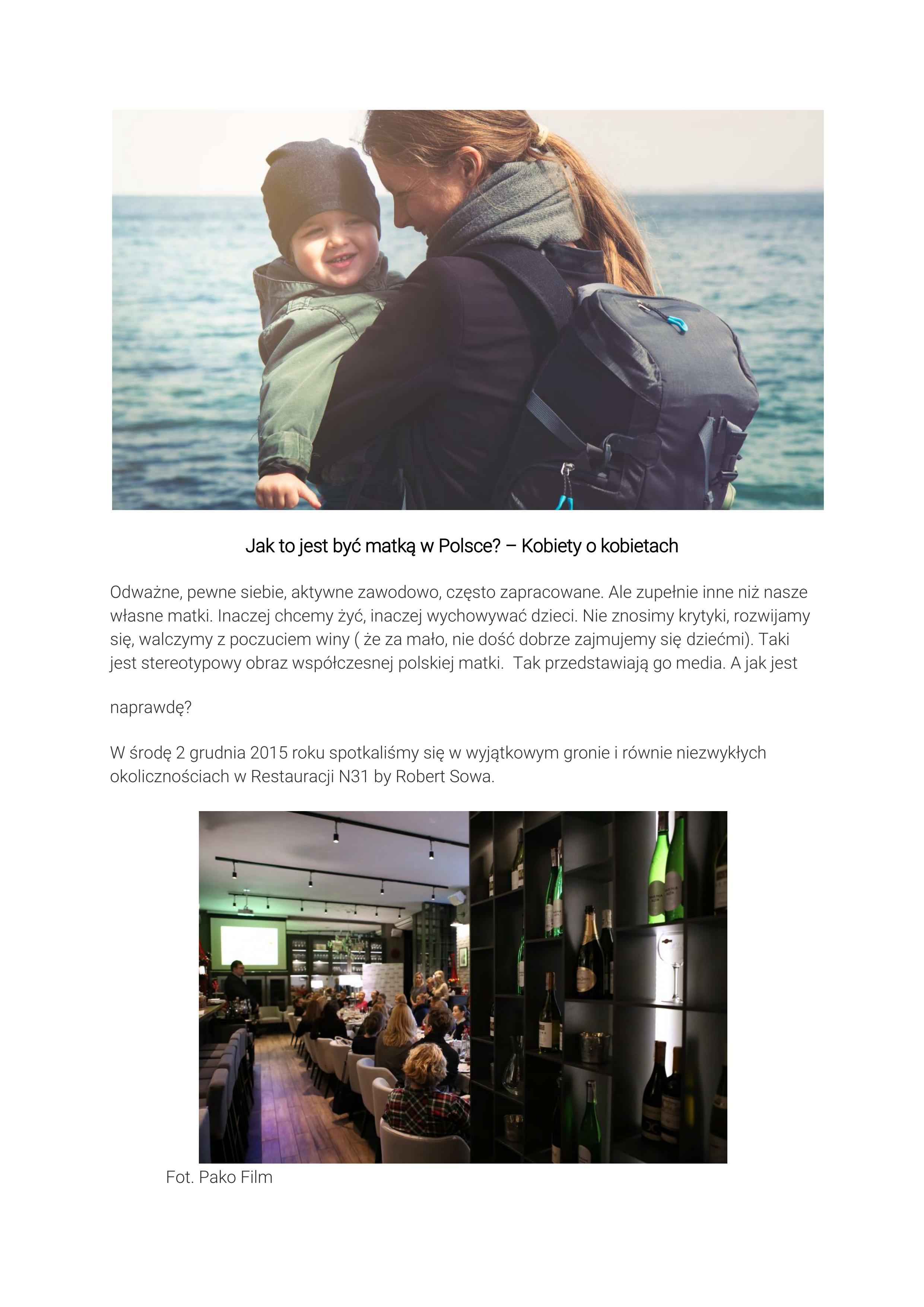 Dzięki uprzejmości naszych Partnerów – którym z całego serca dziękujemy – firmy Biomed, Neurohm Polska, N31 Restaurant&Bar by Robert Sowa oraz Pako Film oraz wspaniałym gościom, mogliśmy podyskutować o tym, jak to jest być matką w Polsce. Nasze spotkanie zyskało więcej blasku, dzięki cennym głosom naszym gości m.in. : dr hab. Jacka Wasilewskiego, Marty Kuligowskiej, Anety Todorczuk-Perchuć, Wioli Kołakowskiej i Segritty.