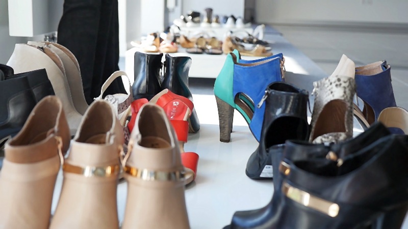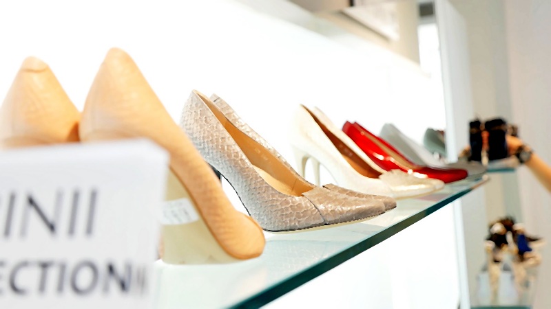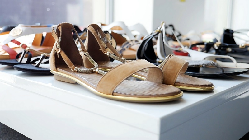 Goście mieli okazję podziwiać bogactwo modeli sandałów, zarówno finezyjnych na wysokim obcasie, zapinanych wokół kostki albo wykonanych z „ lejących się” skór w kontrastowych kolorach, jak i tych najbardziej pożądanych w okresie urlopowym, na płaskim obcasie, wygodnych i lekkich, z ozdobami w postaci dżetów lub złotych i srebrnych klamerek.